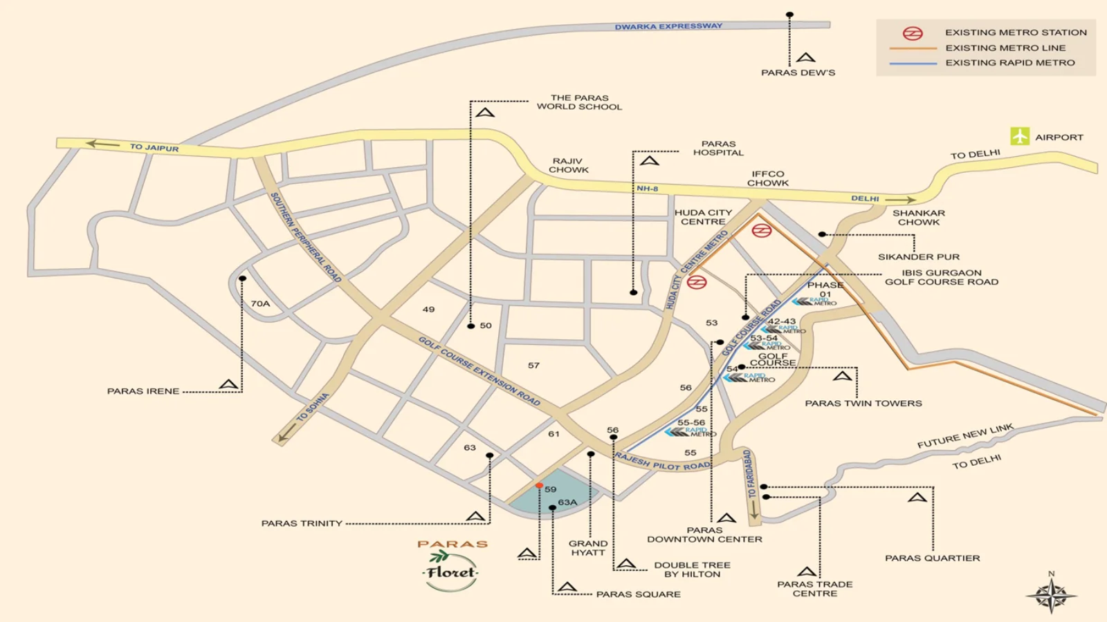 Paras Floret is a prestigious residential project nestled in the heart of Sector 59, Gurgaon. Offering a blend of modern living and natural beauty, this development is a haven for those seeking a comfortable and convenient lifestyle. Paras Floret offers a lifestyle that combines the best of both worlds: the tranquility of a residential community and the convenience of urban living. Residents can enjoy leisurely strolls in the landscaped gardens, relax by the pool, or stay active at the on-site gym. Paras Floret is an ideal choice for those seeking a luxurious and comfortable lifestyle in Gurgaon. With its prime location, modern amenities, and quality construction, this project offers a truly exceptional living experience.